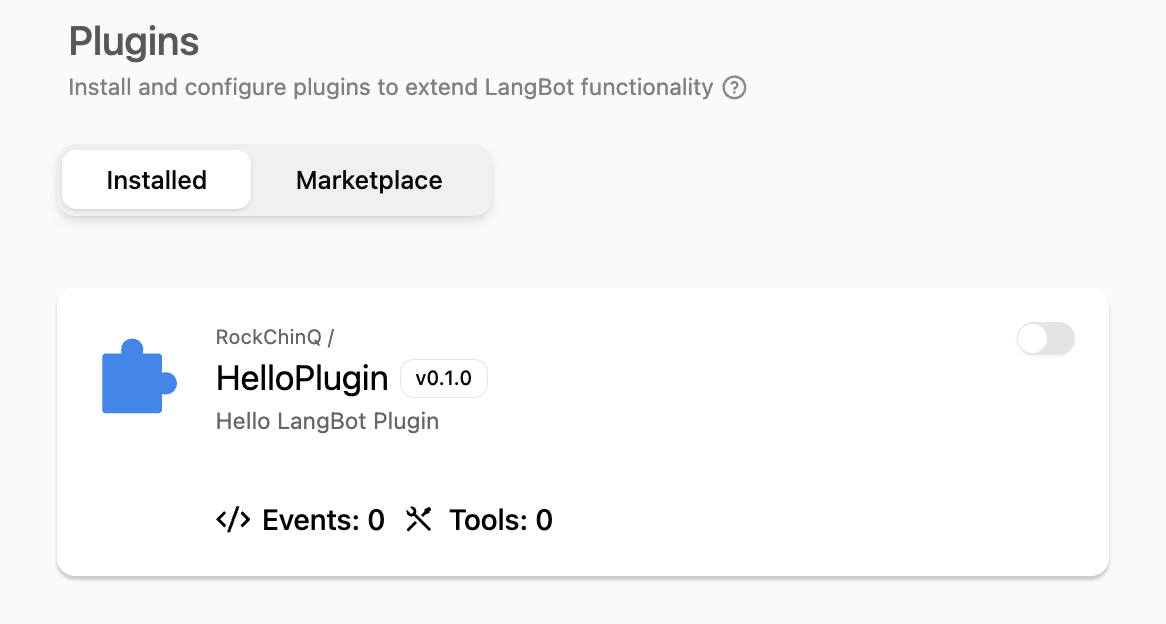 并可以在 LangBot 的 WebUI 中看到此插件已被加载。