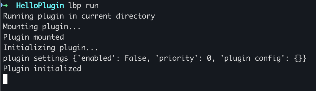 您也可以使用lbp init HelloPlugin命令,在子目录HelloPlugin中初始化插件。